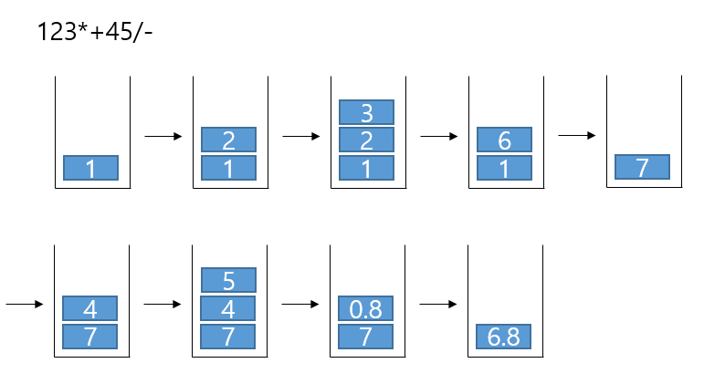 연산자가 나왔다면 스택의 위 두개를 계산해주면 된다.