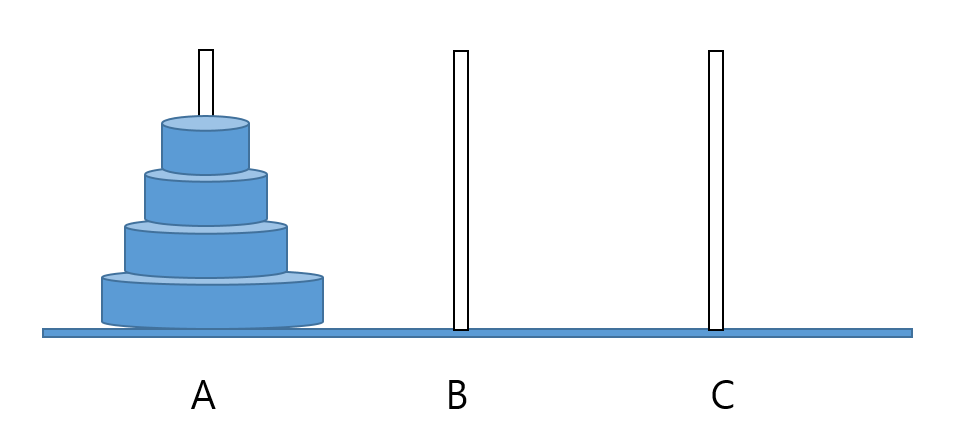 아래 그림은 원판이 5개인 경우의 예시이다.