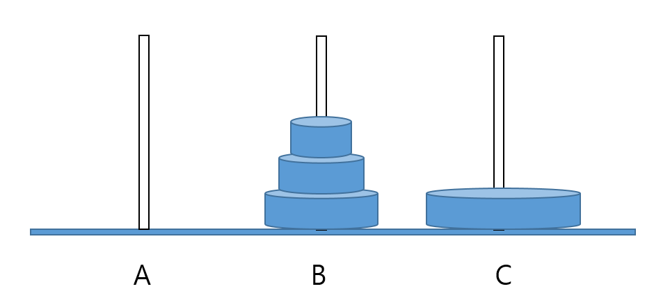 B에 있는 n-1개의 원판을 C로 옮긴다.