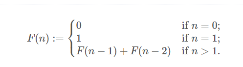 수학에서, 피보나치 수는 위의 점화식과 같이 귀납적으로 정의되는 수열이다. 위의 식에서도 알 수 있듯이, 피보나치 수 F(n)은 0 이상의 n에 대해서만 정의된다.