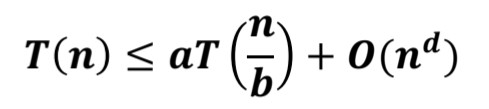 여기서 a는 재귀호출의 수, b는 입력 크기가 줄어드는 정도, d는 일반 과정에서 소요되는 시간 복잡도의 지수이다.