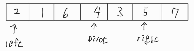 - 이 과정을 left가 right보다 오른쪽으로 올 때까지 반복을 할 것이다.