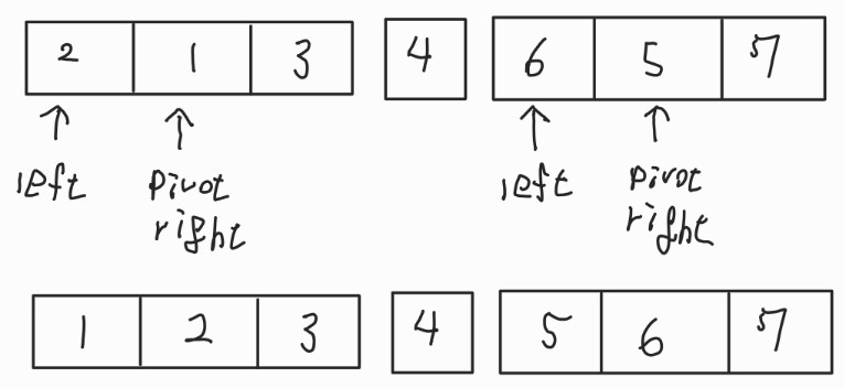 - right가 왼쪽 끝에 도달했으므로 또 한 번 재귀적으로 정렬할 필요가 없다.