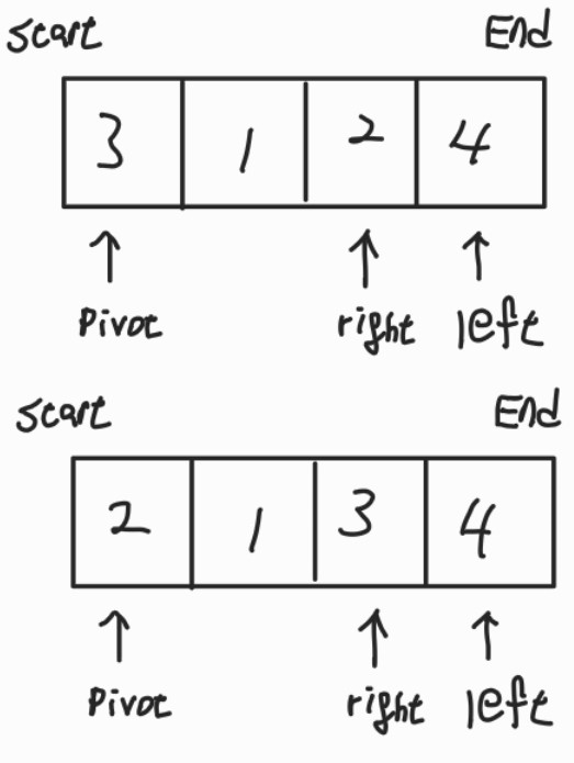 이번에는 피벗을 맨 왼쪽으로 잡았을 때를 알아보도록 하자.