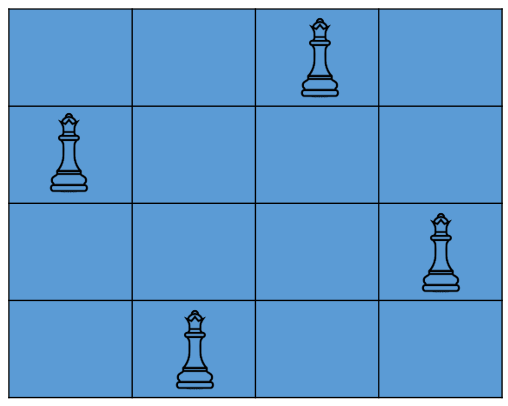 위 과정을 계속하다보면, 다음과 같이 모든 퀸이 공격을 할 수 없는 경우가 나온다.