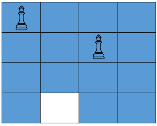 하지만 (2, 1)에 퀸을 두고 나면, 마지막 행인 3행에 퀸을 둘 수 없게 된다.