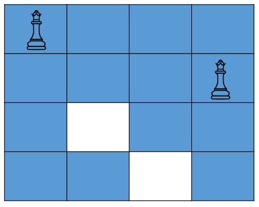 (2, 1)의 칸에 퀸을 둘 수 있다.