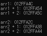 printf("arr2 + 1: %p\n", arr2 + 1);