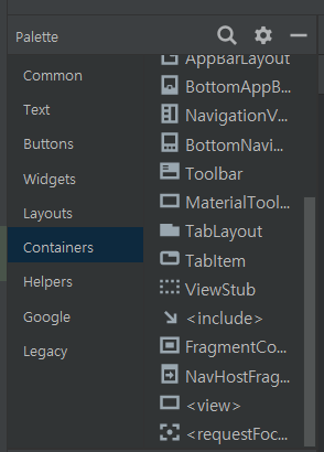 xml의 Design에 가보면 Containers에 TabLayout이 있는 것을 확인할 수 있다.