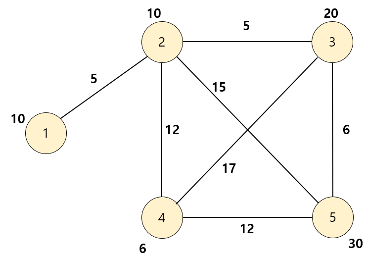 이때, 문제에서는 각 나라에 방문하는 비용과 각 나라를 연결하는 도로를 지날 때 필요한 비용이 주어진다.