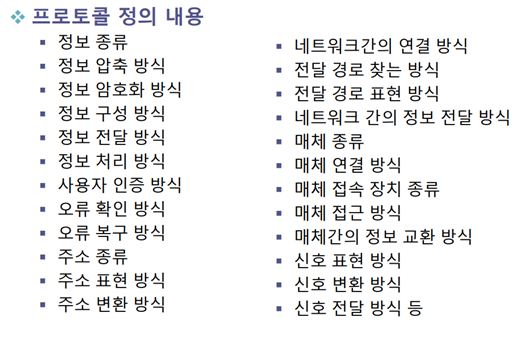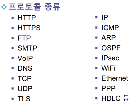 - 인터넷을 구성하는 장치들 간에 정보 교환을 제어하는 규칙