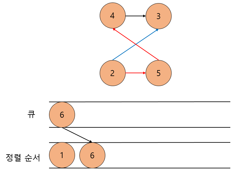 - 간선 제거 이후 진입 차수가 0인 정점을 큐에 저장한다.