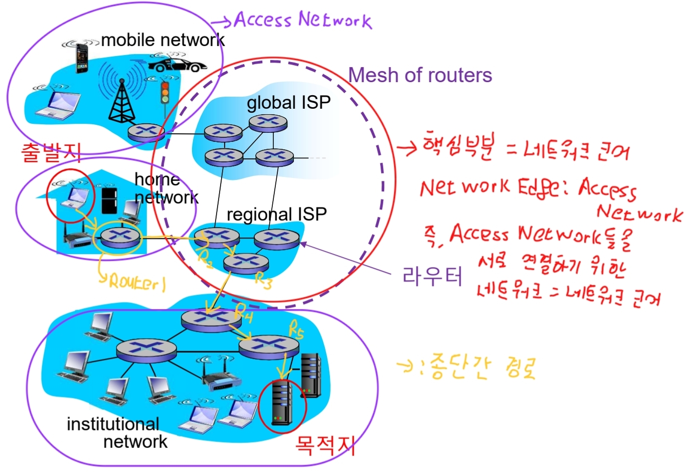 고속의 링크들이 패킷 스위치인 라우터들로 그물망처럼 연결된 네트워크(Mesh of Routers)