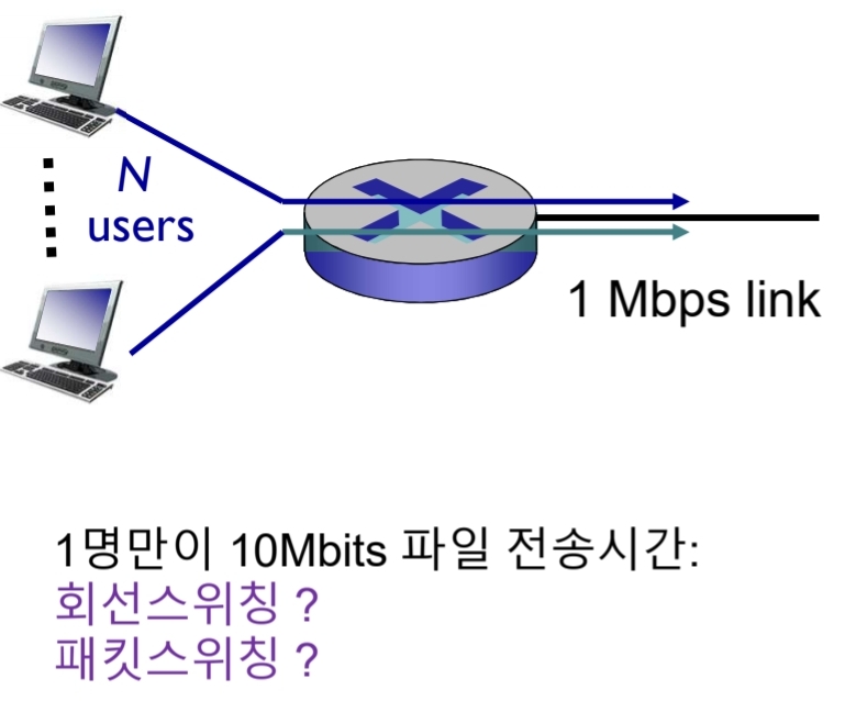 패킷 전송 지연 시간: L/R seconds - L = 7.5Mbits, R = 1.5Mbps -> 전송 지연시간 = 5 sec