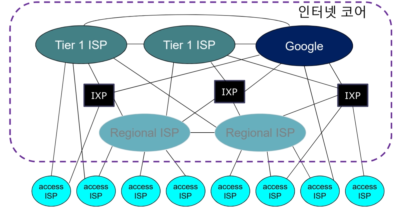 접속 네트워크(Access Network)들을 연결하기 위해 ISP들이 운영하는 광역 네트워크이다.