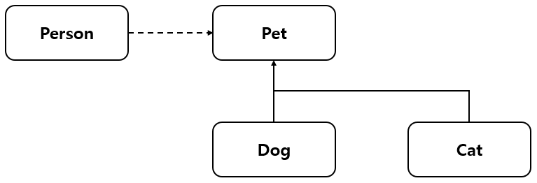 Dog 클래스는 Person 클래스를 의존하지 않으므로 관계도를 그리면 다음과 같다.