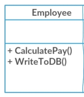 위 사진을 보면 Employee 클래스는 CalculatePay(), WriteToDB() 두 가지 메소드를 가지고 있다.