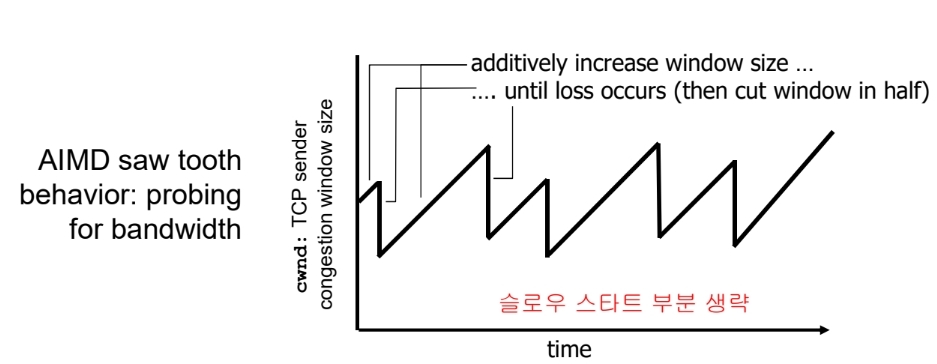 (ACK 수신 → cwnd = cwnd + (1/cnwd))