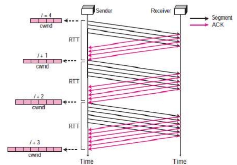 - 즉, ACK 기준으로는 1씩 증가, RTT 기준으로는 2배(지수적)으로 증가한다.