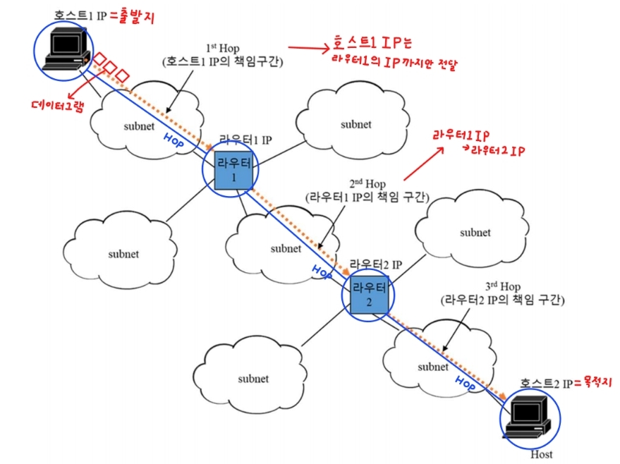 - 다양한 서브넷을 통해 IP 데이터그램 전송 가능