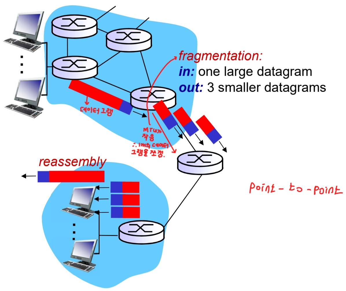 - 서브넷에 따라 MTU(Maximum Transmission Unit)이 다름 → 단편화 필요