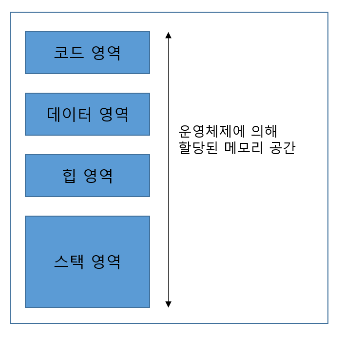 프로그램을 실행했을 때 운영체제에 의해 마련되는 메모리의 구조는 4개의 영역으로 나뉜다.