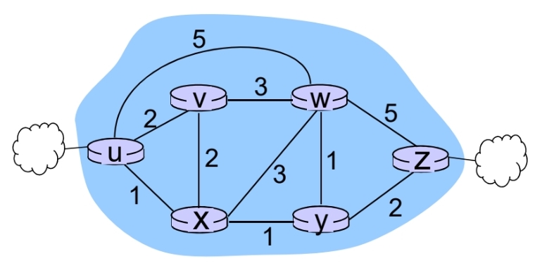 - 라우터들을 비용이 매겨진 링크로 연결한 그래프