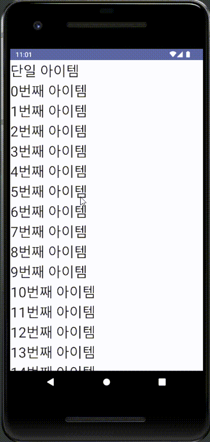 현재 표시된 항목만 구성하고 배치하는 세로 스크롤 목록입니다.