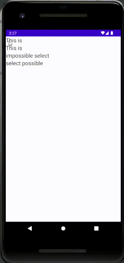길게 눌렀을 시 선택되게 하기 위해서는 SelecttionContainer Composable로 래핑해줘야만 한다.