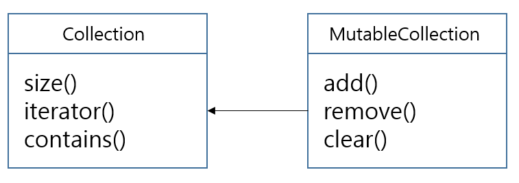 그대로 옮겨놓았다. 추가로 변경 가능한 각 인터페이스는 자신과 대응하는 읽기 전용 인터페이스를 확장(상속)한다.