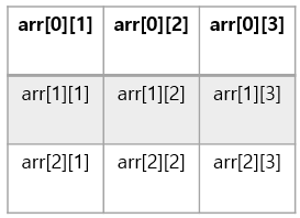 1차원 배열과 같이 인덱스를 통해 접근할 수 있고, 값을 저장할 수 있다.