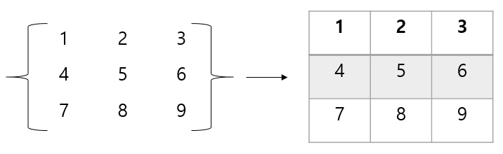행렬을 2차원 배열로 표시하면 다음과 같다.