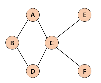- 인접 정점(adjacent vertex): 간선에 의해 직접 연결된 정점을 의미한다. ex) A-B, C-E, C-F