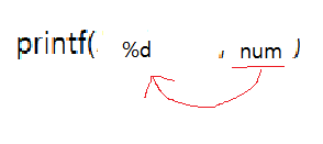 여기서 %d가 인자1, num은 인자2라 하면, 인자2에 있는 값이 인자1에 따라 출력이 되게 한다.