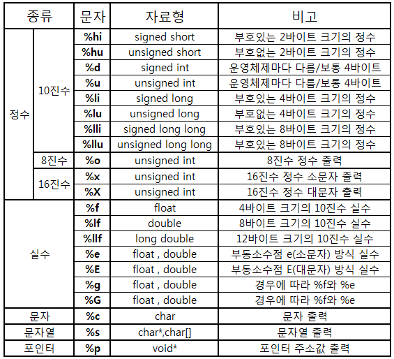 입력의 형식은 위의 서식 문자를 적절하게 사용하면 된다.