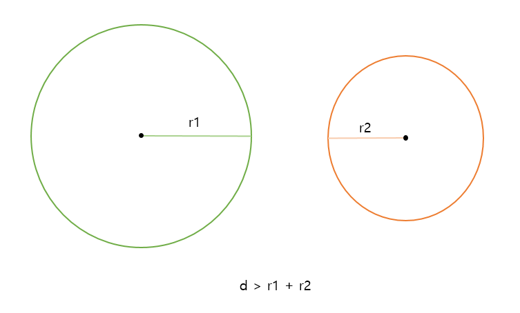 - 두 점 사이의 거리가 각 원의 반지름의 합보다 클 때(d > r1 + r2)