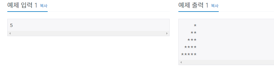 하지만, 오른쪽을 기준으로 정렬한 별(예제 참고)을 출력하시오.