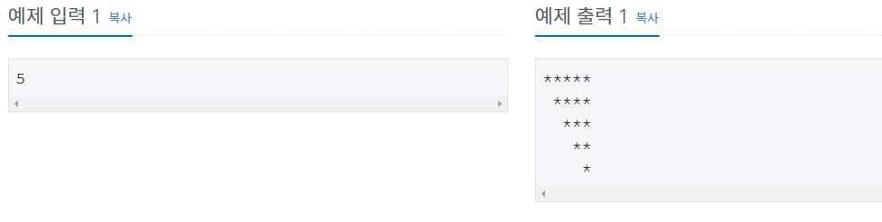 첫째 줄에는 별 N개, 둘째 줄에는 별 N-1개, ..., N번째 줄에는 별 1개를 찍는 문제