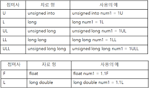 이를 위해 C언어에서는 접미사를 정의하고 있다.