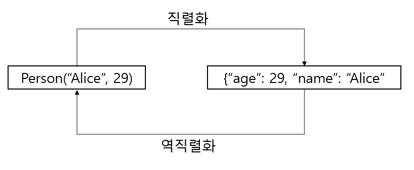 반대로 역직렬화(deserialization)는 텍스트나 이진 형식으로 저장된 데이터로부터 원래의 객체를 만들어낸다.