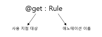 사용 지점 대상은 @ 기호와 애노테이션 이름 사이에 붙으며, 애노테이션 이름과는 콜론(:)으로 분리된다.